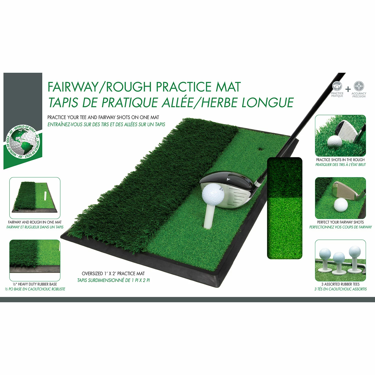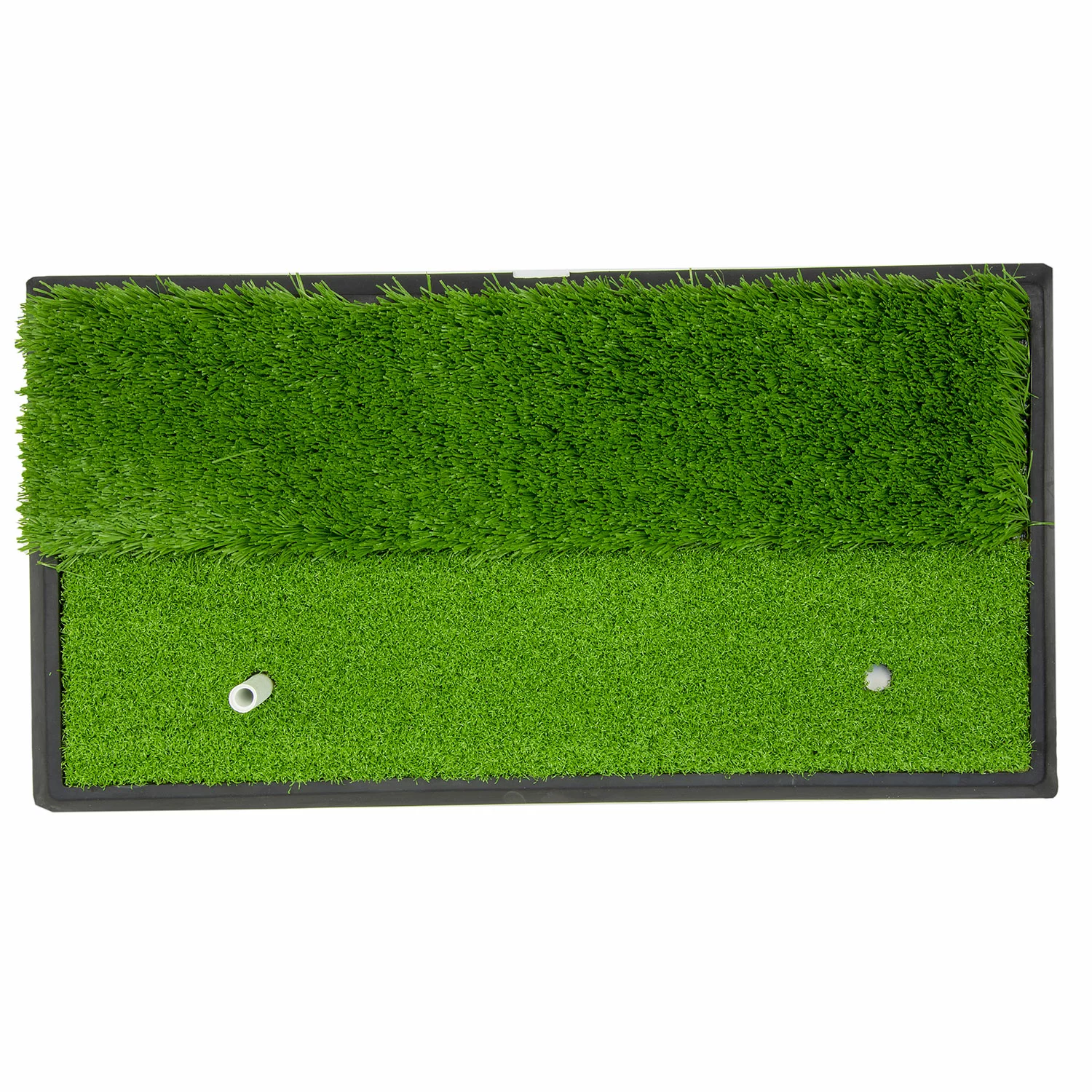 The Dual Height Practice Mat is designed with 2 turf heights to enhance your training while simulating the fairway and the rough of a golf course.