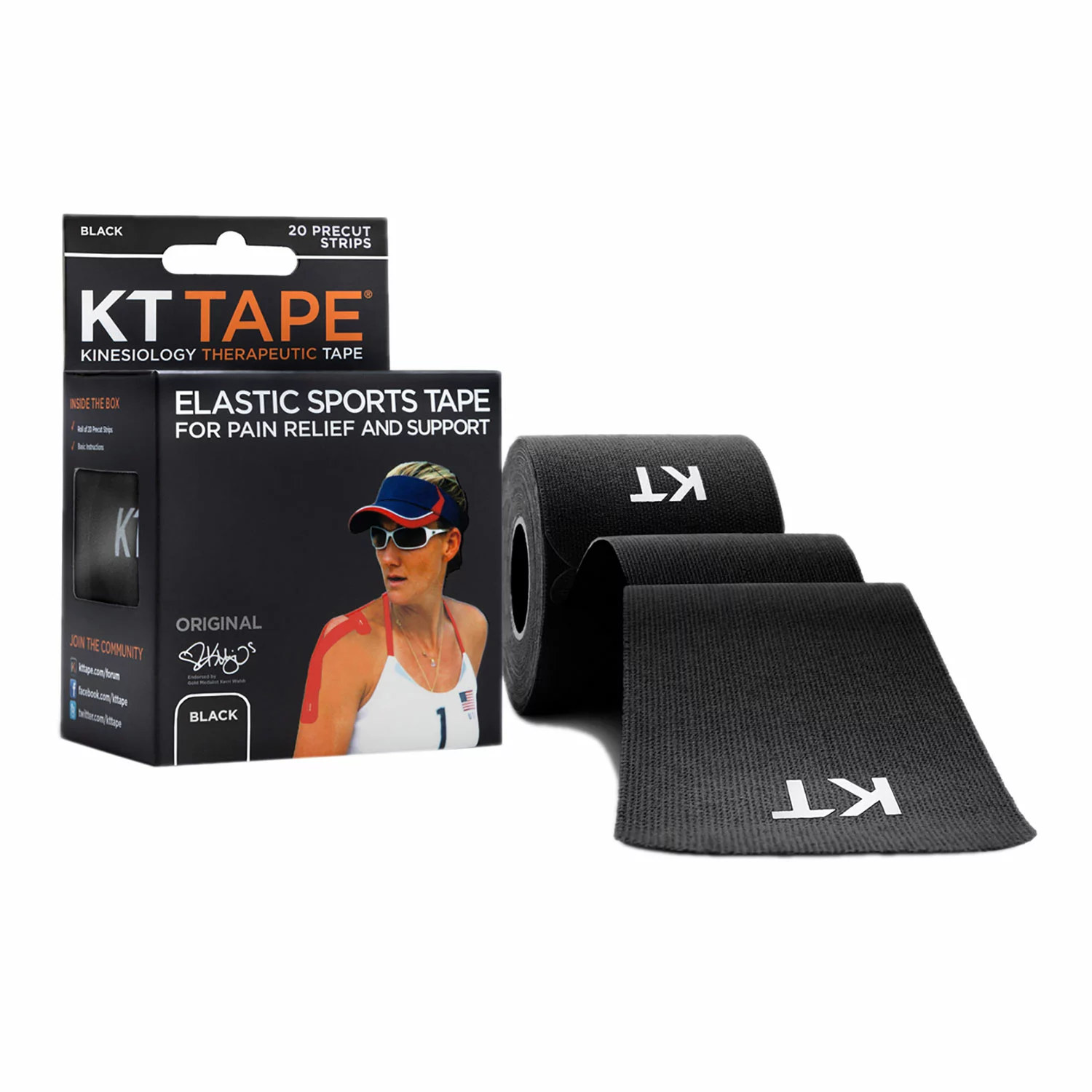 KT (Kinesiology Therapeutic) Tape is a strong, elastic athletic tape that reduces muscle pain, increases mobility, and enhances athletic performance. KT Tape provides relief and support for muscles and joints and can be used to prevent or treat hundreds of sports injuries. Kinesiology tape, treatments, and application techniques have been used by healthcare professionals such as orthopedics, chiropractors, physical therapists and athletic trainers for over thirty years. KT Tape is the first brand of kinesiology tape ever to be offered directly to consumers and is widely adopted by healthcare professionals and sports.