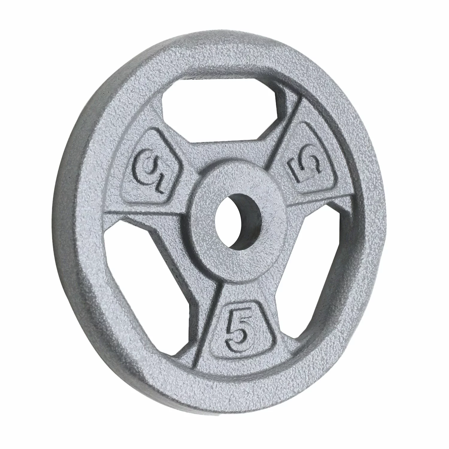 Grip Plates are a great addition for any home gym. This 5 lb. cast iron weighted grip plate features a three-hole design for easy handling.